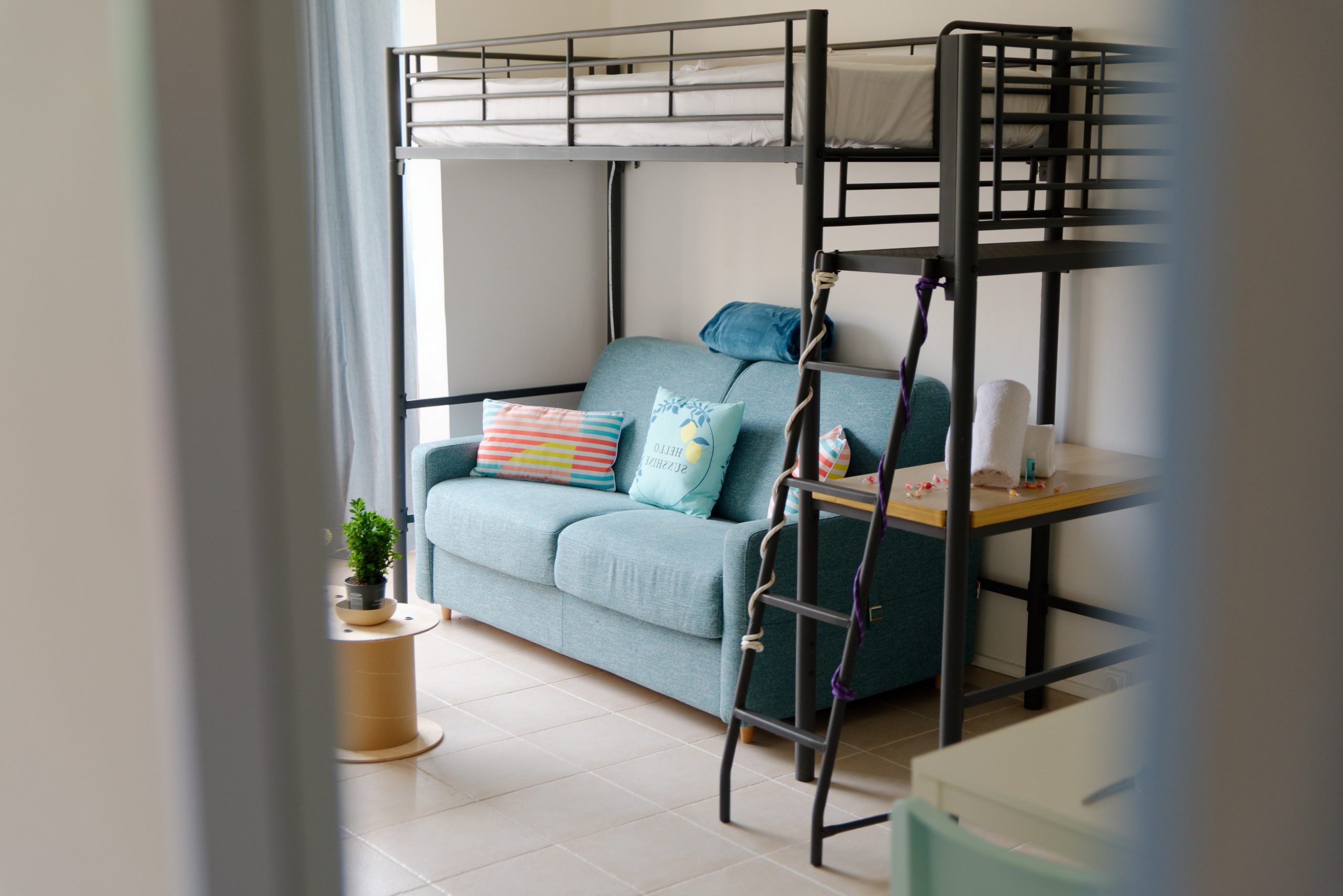 Le logement est entièrement meublé et équipé, prêt à accueillir une ou deux personnes. Vous y trouverez un canapé-lit double ainsi qu’un lit mezzanine simple, optimisant l’espace pour répondre à vos besoins. Idéal pour une personne seule ou en duo, ce studio offre un cadre confortable pour poser vos valises et vous installer rapidement.